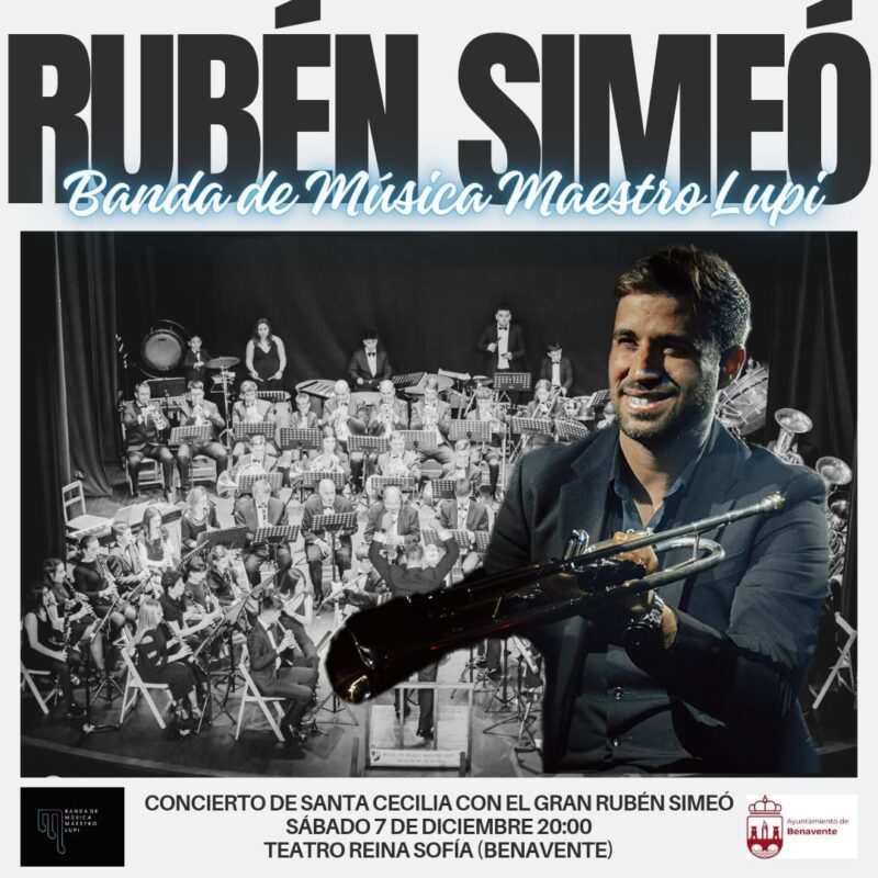 El Concierto de Santa Cecilia de la Banda de Música Maestro Lupi de Benavente es uno de los eventos más esperados del año. Este 2024, la agrupación se supera al contar con un invitado de lujo: el célebre trompetista Rubén Simeó, quien se unirá a la banda para ofrecer un espectáculo inolvidable.