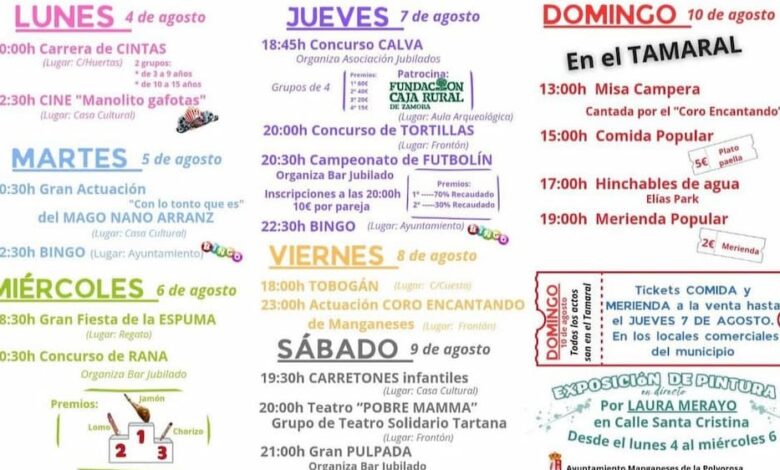 La Semana Cultural de Manganeses de la Polvorosa comenzará el próximo lunes 4 de agosto y se prolongará hasta el domingo 10. Como cada año, es una de las fechas más esperadas por los vecinos y visitantes, que se acercan a disfrutar de las distintas actividades que se realizan en el pueblo.