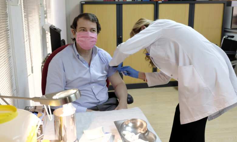 El presidente de la Junta de Castilla y León, Alfonso Fernández Mañueco, junto a la consejera de Sanidad, Verónica Casado, se han vacunado hoy frente a la gripe dentro de la campaña de vacunación 2020 que acaba de comenzar en el conjunto de la Comunidad. Según ha destacado el presidente, hoy, ante la actual pandemia “es más importante que nunca concienciarnos todos de la importancia de proteger y protegernos frente a la gripe, una enfermedad que es un relevante problema de salud por su mortalidad y complicaciones”. “La prevención salva vidas”, ha afirmado en un llamamiento a la responsabilidad y solidaridad de todos.