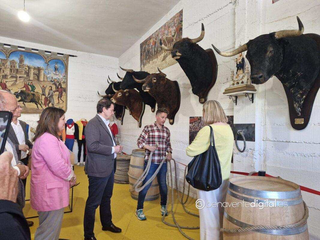 El museo presentó a la comitiva una valiosa exposición fotográfica, cabezas de astados, uniformes de las peñas locales, y una colección de capotes pintados por la artista de Santa Cristina de la Polvorosa, Mer Fidalgo. Durante la visita, Mañueco mostró especial interés en los detalles históricos y culturales, incluso se animó a hacer un pase torero con uno de los capotes. Alberto Lorenzo, profundo conocedor de la fiesta, detalló cómo se utiliza la maroma durante el recorrido del toro, resaltando la importancia de esta tradición en la identidad benaventana. La jornada concluyó con un acto electoral en Mózar de Valverde.