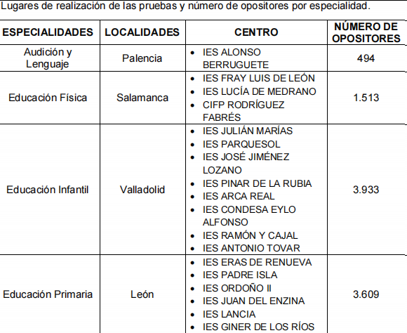 Así 3.609 opositores realizarán la prueba para acceder a una de las 219 plazas de Educación Primaria en León; en Valladolid será la prueba de Educación Infantil, con 168 plazas para 3.933 aspirantes; y las 101 plazas de Lengua Extranjera (Inglés) estarán esperando a 1.319 maestros en Zamora.