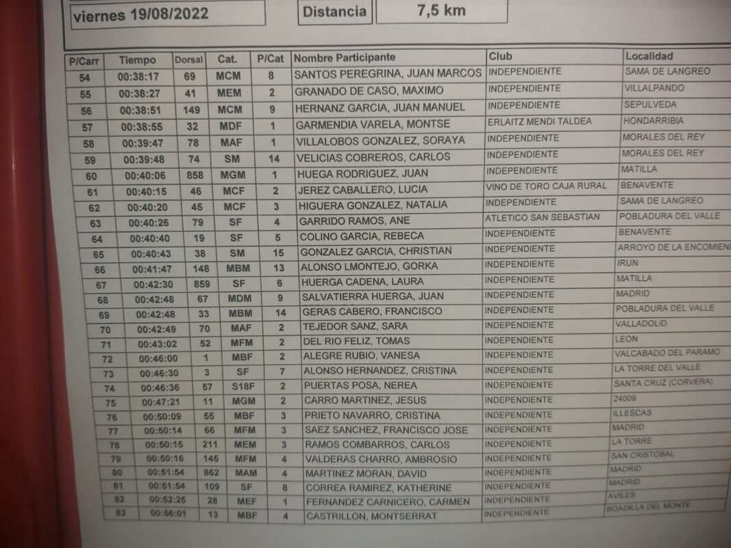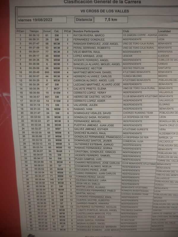 La organización de la VII edición del Cross de los Valles celebrada al atardecer de este viernes 19 de agosto en Pobladura del Valle elogia la numerosa participación en las tres categorías, tanto en la de corredores, andarines y niños. En total, fueron 230 personas las participantes, 90 de ellas en la categoría de corredores, 70 andarines y 65 niños y niñas.