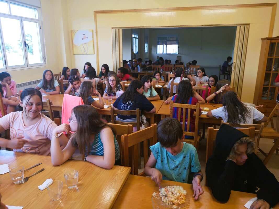 Para fomentar la convivencia entre los niños y jóvenes se ha dispuesto de una amplia logística con 15 monitores y personal de servicio. Ni que decir tiene la generosa nómina de equipos y dotaciones para llevar a cabo el programa de multiaventura y tecnología diseñado al efecto. Desde las ocho y media de la mañana los chavales se despiertan con música y bailes para pasar al comedor poco más tarde a desayunar, el aseo, recogida de habitaciones y ya a partir de las diez de la mañana comienzan las actividades hasta la hora de comer a las 14:00 horas. Un receso para el descanso y llega la merienda agradecida por niños y jóvenes. Toca pasar bajo la ducha, la cena y a partir de las diez de la noche la velada nocturna. Y un nuevo día comienza en este campamento estival de aventura y convivencia.