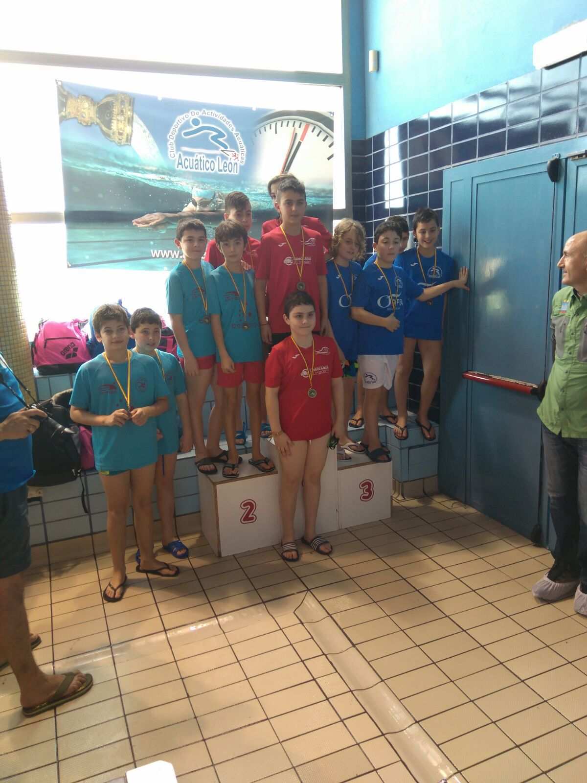 El domingo se disputó el I Trofeo organizado por el Club Acuático León en las instalaciones de La Palomera y ante cientos de nadadores de la región. El Club Benavente Natación acudía a la cita con 25 nadadores de todas las categorías, con especial mención a los 6 prebenjamines (Carlos, Sergio, Daniel, Jimena, Irene y Érika) que salían de Benavente por primera vez a disputar un campeonato y que a pesar de quedarse a las puertas de las medallas lo hicieron fantástico. 16 medallas fue el resumen de la Competición con 4 Oros que protagonizaron Aitana Gutiérrez en 100 Estilos, Heber Otero en 50 Mariposa, Patricia Micovschi en 50 Mariposa y el relevo de 4x 50 Estilos Benjamín Masculino que nadaban Raúl Esteban, Fernando Casado, Heber Otero y Marcos Uña.
