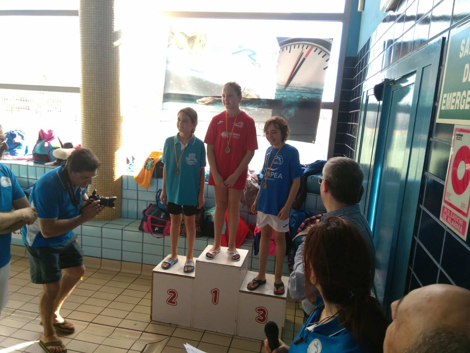 Y 5 bronces de Roberto Adiego por 2 veces en 100 Espalda y 100 Mariposa, Heber Otero en 50 Libres y los relevos 4x50Estilos Benjamín Femenino con Patricia Micovschi, Maria García, Marina Gómez y Natalia Vázquez y el relevo 4×50 Estilos Alevín Femenino con Eva Real, Claudia Arce, Aitana Gutierrez y Marta Méndez. Buenas marcas también para Sergio Blanco Victoria Velasco y Celia Vega.