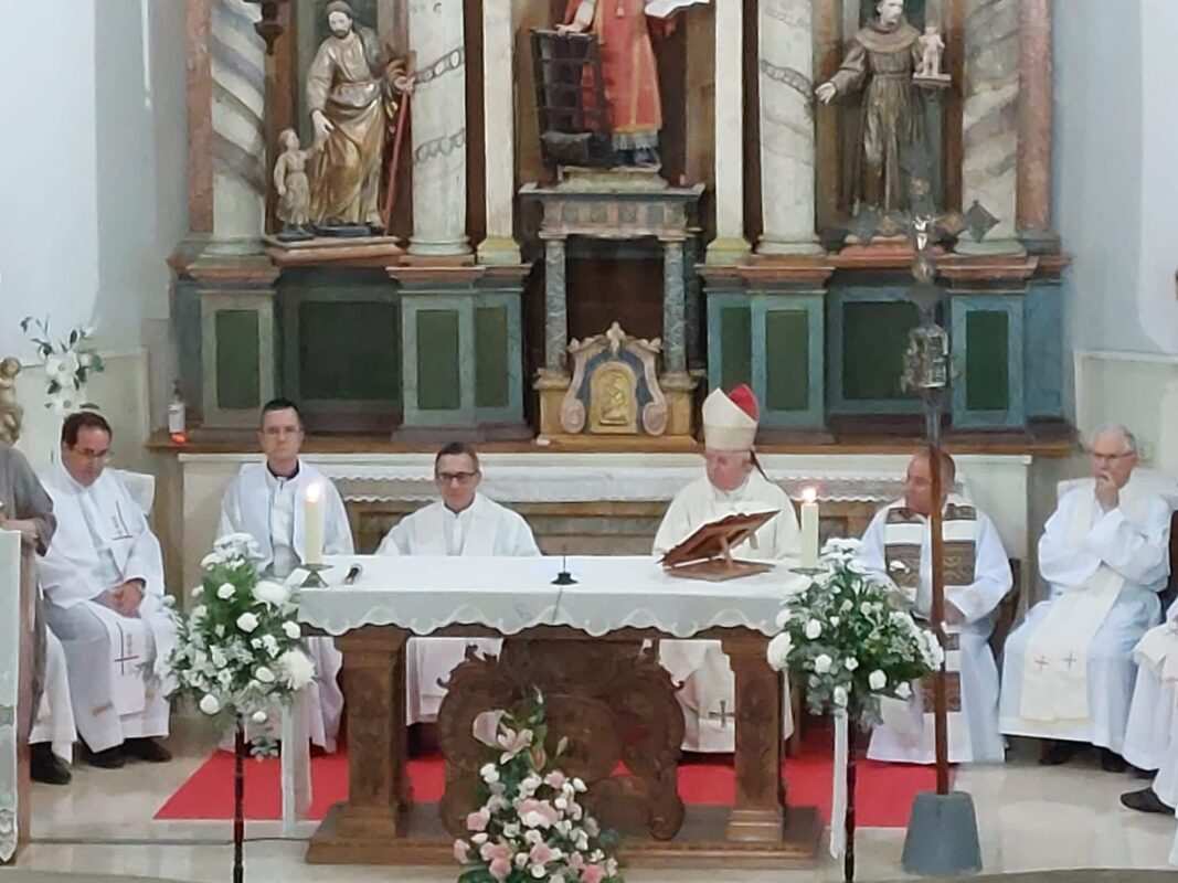 Con la celebración de una misa solemne en la iglesia parroquial de San Vicente mártir, presidida por el propio prelado, se daba comienzo al homenaje en la que el párroco José María Vecillas le dedicó a monseñor una emotiva alocución de bienvenida ante un templo abarrotado de fieles que contó con las mimadas interpretaciones de la Coral Benaventana. Junto al obispo y el párroco actuando de maestro de ceremonias, concelebraron el vicario general, Javier Gay, el vicario de pastoral, José Manuel Carrasco, el coordinador de la Unidad Pastoral de los Valles, Miguel Hernández, el arcipreste del territorio zamorano de la Diócesis de Astorga, Agustín Rubio, Marcos Lobato, Antolín de Cela, Jerónimo Martínez Franco, José Antonio Prada, Pedro Centeno, Santiago García, Raúl Vega, P. Carmelo González, Baltasar Villalón, Blas Miguélez, Samuel Prieto y Aliaksandr Tarasevich. De la alocución de agradecimiento se encargó el reverendo Pedro Centeno Vaquero.