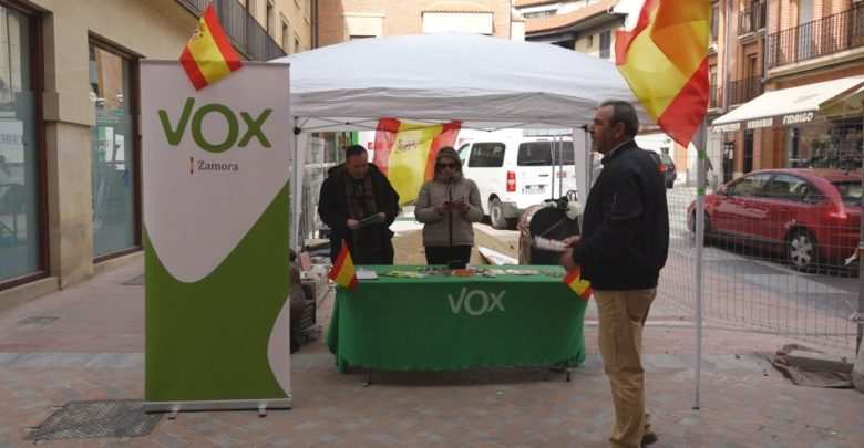 Vox Zamora ha instalado esta mañana una mesa informativa, muy cercana a la entrada del mercado de la ropa, para contarles a los ciudadanos que se acercaban hasta ella las propuestas que ofrecen desde su partido.