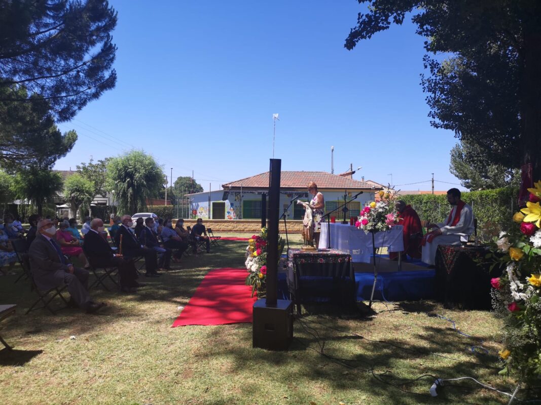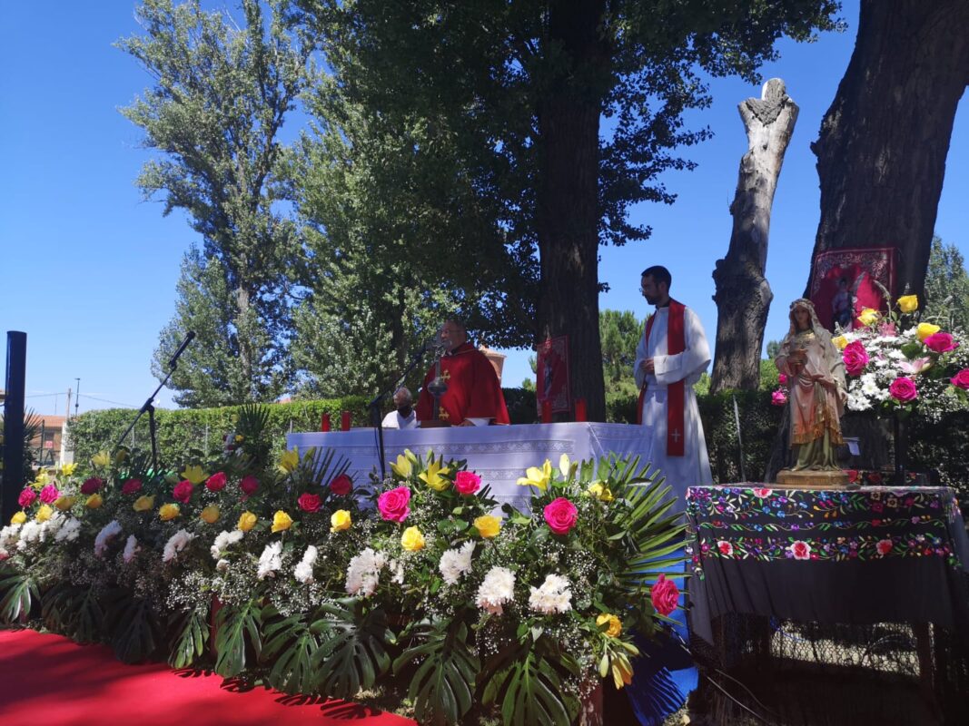 Un altar improvisado en el que el párroco del pueblo dirigió la misa al aire libre por la festividad de Santa Cristina.