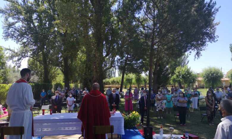 El buen tiempo permitió que la misa se pudiese celebrar en la zona de La Estacada con medidas de seguridad y separación entre los asistentes.