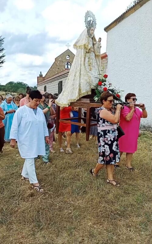 Vestida de fiesta, con la capa bordada con delicados hilos de oro y su testa coronada de plata, así salía a la calle la imagen de la Señora, la Virgen del Puente, en Molezuelas de la Carballeda. Durante cuatro días, desde el viernes hasta este lunes 11 de septiembre, en la localidad se han venido celebrando los festejos de su copatrona con sede en la ermita junto al arroyo El Regato. Se viene a cumplir una tradición entre los devotos y vecinos que ven multiplicada en estas fechas su más que mermada población.