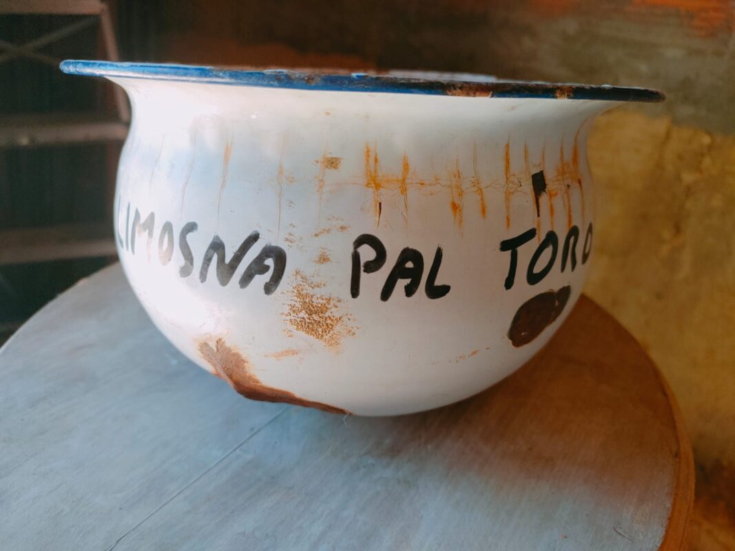 Después todos los personajes procedían, todos juntos, a pasar puerta por puerta a pedir “limosna pal toro”. La gente solía dar alimentos: patatas, huevos, aceite, chorizos, algún pollo y por supuesto dinero. Con todas las viandas y las que compraban con el dinero recaudado los participantes hacían una cena (o varias según lo recaudado) en la que se comentaban los lances más graciosos y, por supuesto, los más picantes y jocosos.