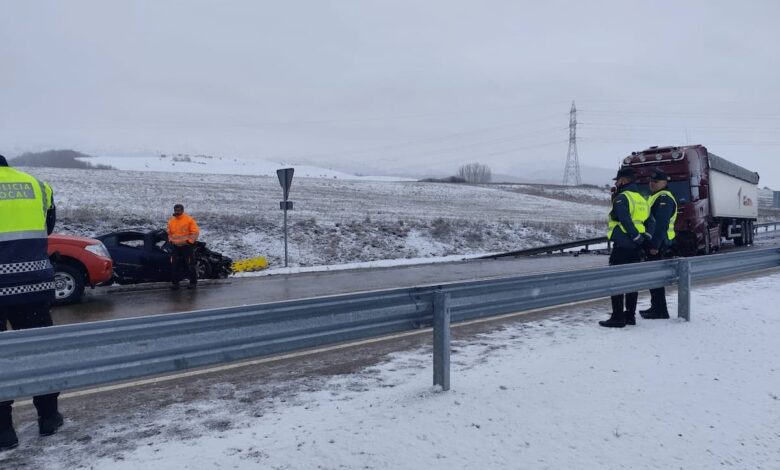Una llamada alertó al servicio de emergencias del choque entre un camión y un turismo. El conductor del coche se encontraba atrapado en el interior del vehículo e inconsciente, lo que hizo necesaria la intervención de los servicios de rescate.