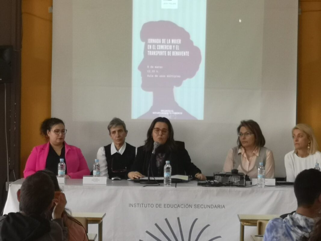 El instituto benaventano «León Felipe» celebraba esta mañana una jornada sobre la mujer en el comercio y el transporte de Benavente coincidiendo con el Día Internacional de la Mujer, este 8 de marzo. Una actividad organizada por el departamento de Comercio y Marketing, ciclo formativo del que goza en exclusiva en la provincia este centro educativo. Mujeres Profesionales del comercio y el transporte en la ciudad participaron con los alumnos sobre sus experiencias en ambos sectores. La jefa del departamento de Comercio y Marketing hacía hincapié en este ciclo formativo del Instituto debido a la fortaleza que el comercio y el transporte desarrollan en la ciudad.