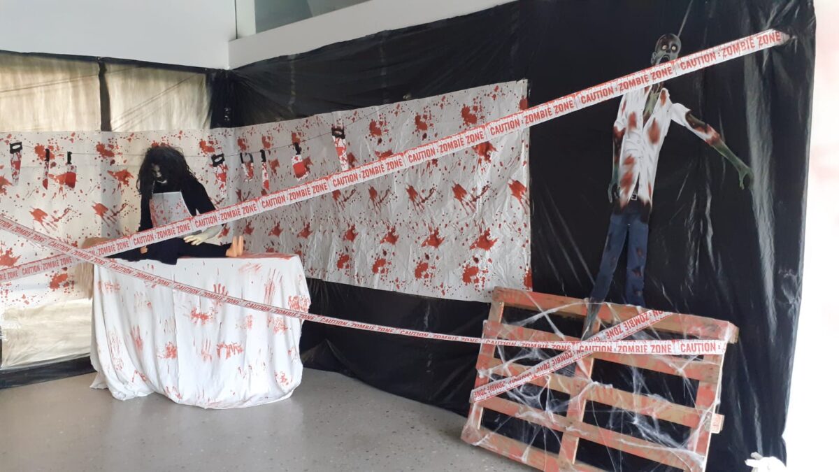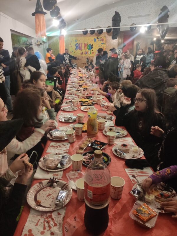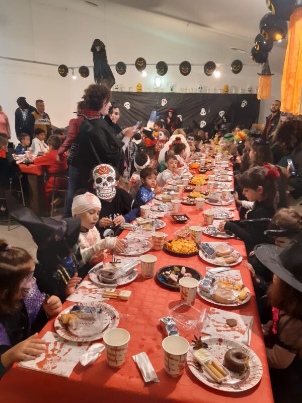 Durante las jornadas previas se organizaron talleres relacionados con la fiesta. Así, se desarrollaron talleres de manualidades confeccionando cadáveres con botellas, un taller de decorado de calabazas y, en especial, el taller de cocina donde los pequeños chefs elaboraron platos sugestivos para degustar y compartir en Halloween: murciélagos, pizzas momia y huesos rellenos de queso.