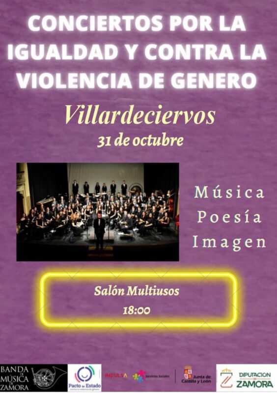 El pabellón multiusos de Villardeciervos acoge en la tarde de este domingo un concierto por la igualdad y contra la violencia de género. Una velada abierta a partir de las 18:00 horas y que viene de la mano de la Banda de Música de Zamora en el marco del proyecto que esta agrupación musical viene ofreciendo por algunos pueblos de la provincia hasta el mes de diciembre.