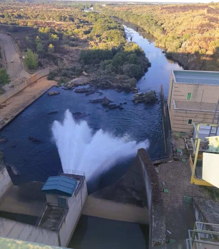 La presa del embalse del Agavanzal suelta agua desde el sábado.