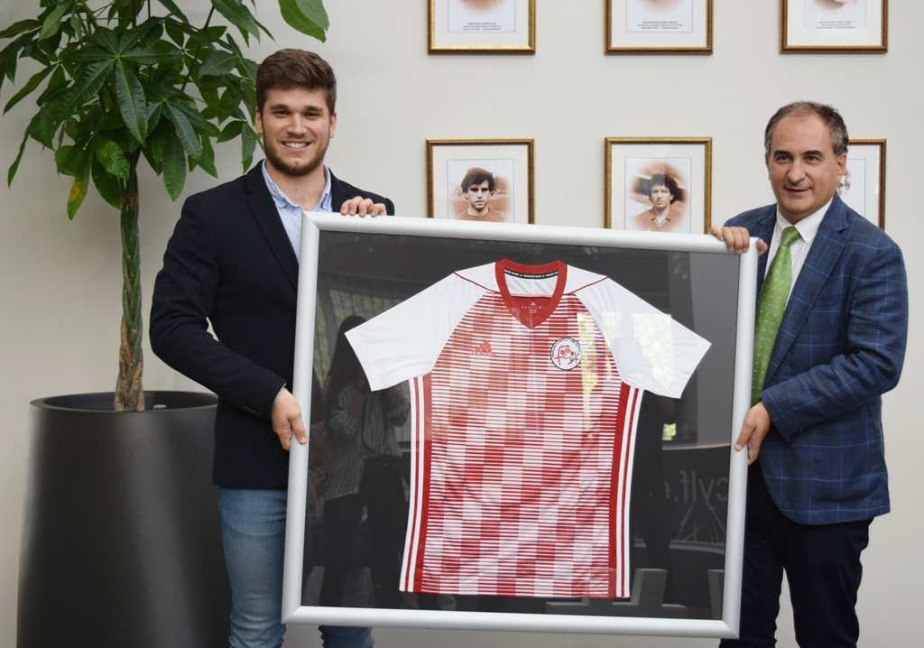 El jugador del Atlético Benavente David Novoa del Hoyo ha formado parte en la tarde de hoy, en la sede de la Federación de Castilla y León de Fútbol de la presentación del balón de juego del balompié regional para las dos próximas campañas y las camisetas de las Selecciones Autonómicas, ambos acuerdos con la marca deportiva ADIDAS.