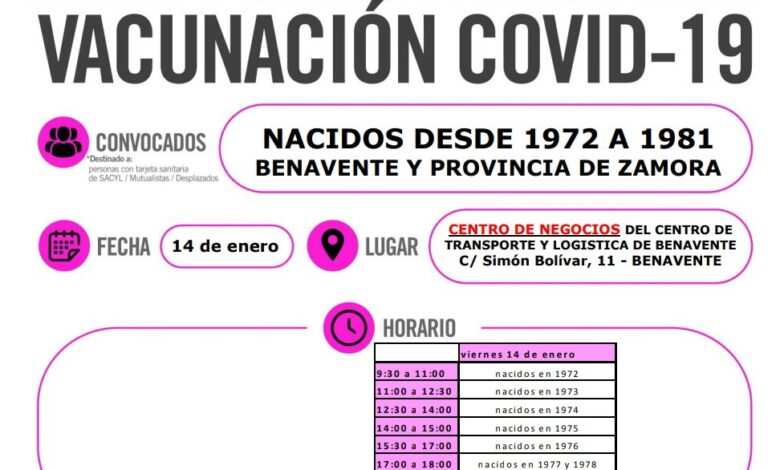 Se informa de las siguientes campañas de vacunación en el Área de Salud de Zamora para la siguiente semana, que se añaden a las ya convocadas anteriormente: