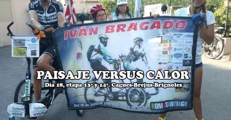 La etapa fue preciosa porque los paisajes de la costa azul lo son, pero también fue dura por el calor que hacía ya desde primera hora. Para evitar problemas como el de ayer, Fátima y Paula hicieron el primer tramo, desde CAGNES a CANNES y se quedaron ya en la residencia mientras Iván, Silvia y yo tirábamos hacia FREJUS, de donde nos separaban aún 45 kms. Fue casi una carrera contra el reloj porque cada vez el sol apretaba más duro. Una vez en Frejus, José Luis nos recogió en la furgoneta y nos trajo de vuelta a Cannes. Fue una hora y media de tráfico y sauna. Una verdadera prueba de resistencia. Iván llegó diciendo que estaba aplatanado y no era el único».