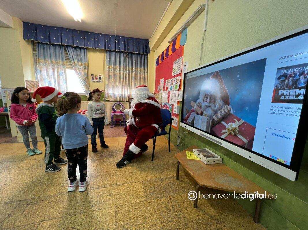 El colegio Buenos Aires de Benavente recibía esta mañana la visita del Papá Noel. Una agradecida presencia para los escolares a los que las caras se les llenaron de felicidad e ilusión al contemplar y poder sentir de cerca al querido personaje de la Navidad.
