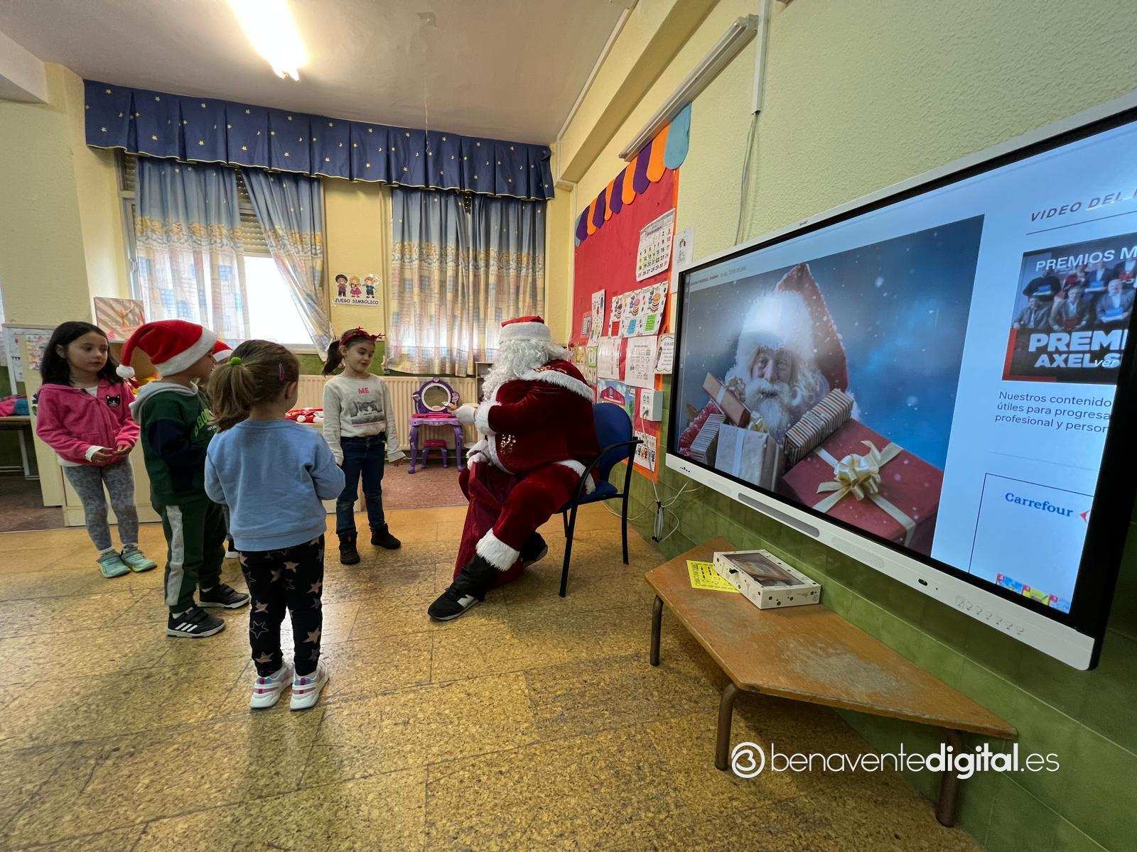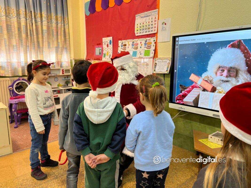 El colegio Buenos Aires de Benavente recibía esta mañana la visita del Papá Noel. Una agradecida presencia para los escolares a los que las caras se les llenaron de felicidad e ilusión al contemplar y poder sentir de cerca al querido personaje de la Navidad.