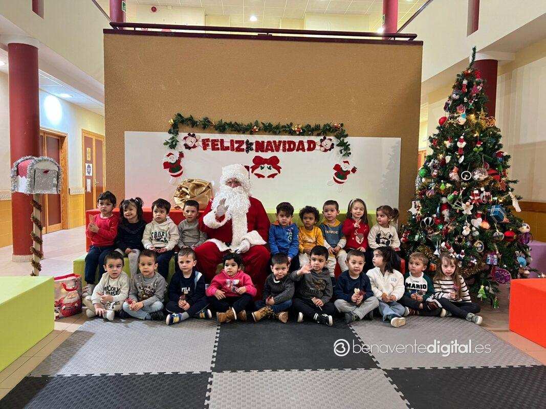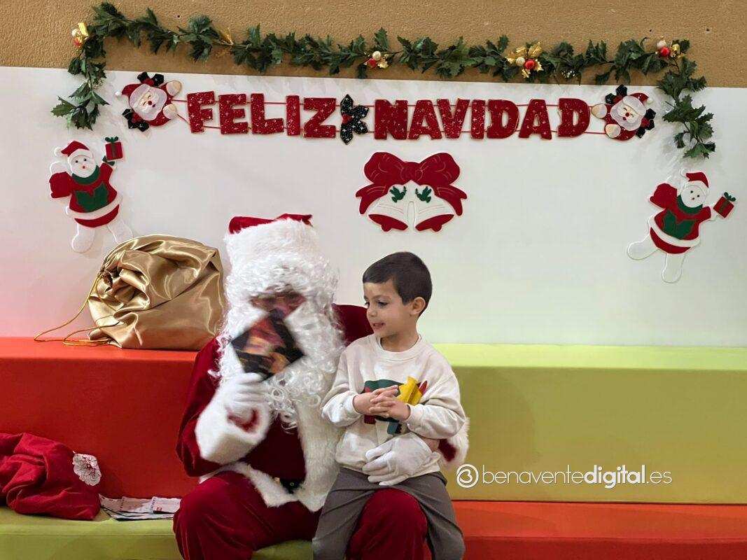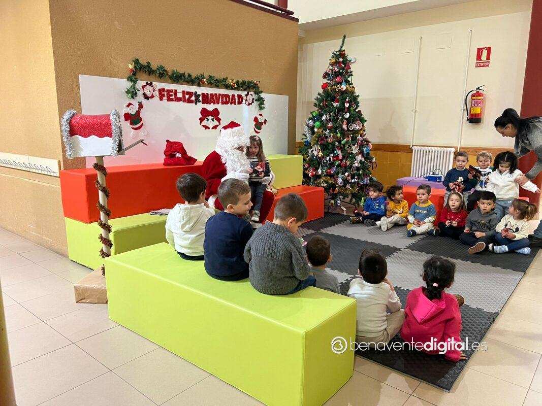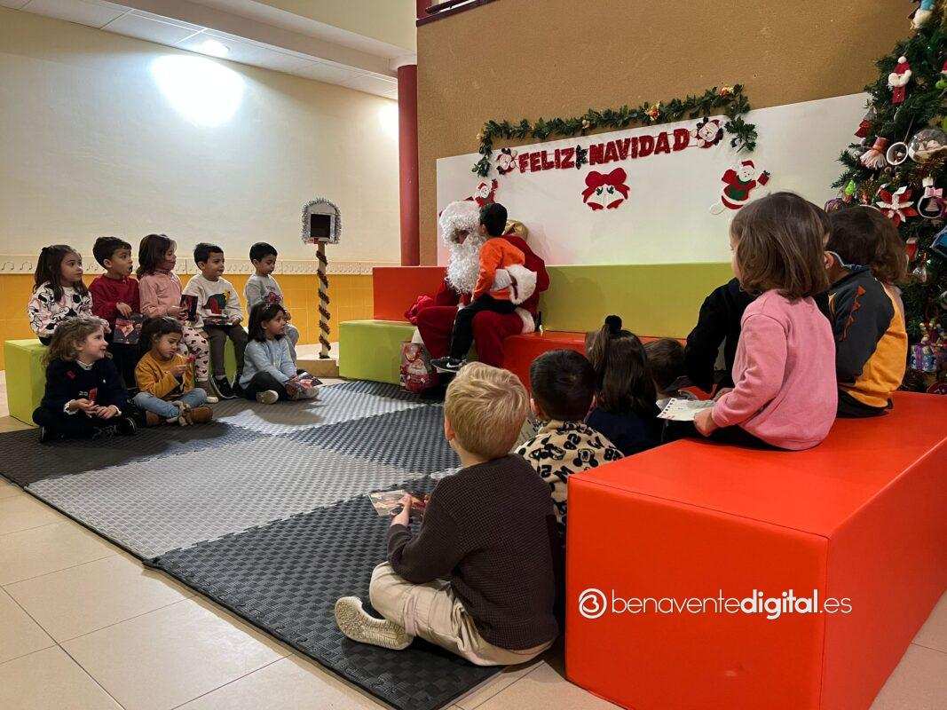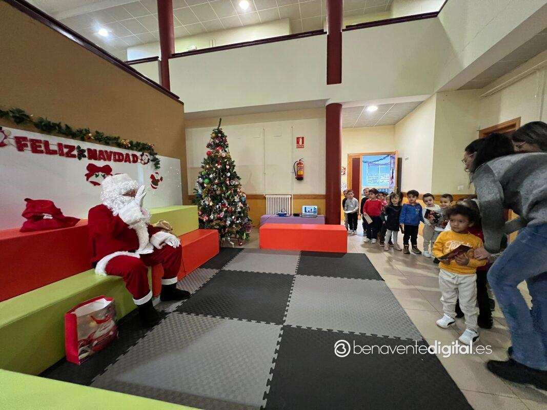 Papá Noel hizo su entrada en el colegio mientras los rostros de los pequeños se iluminaron con sonrisas radiantes al ver al legendario personaje navideño, vestido con su característico traje rojo y portando un saco lleno de regalos.