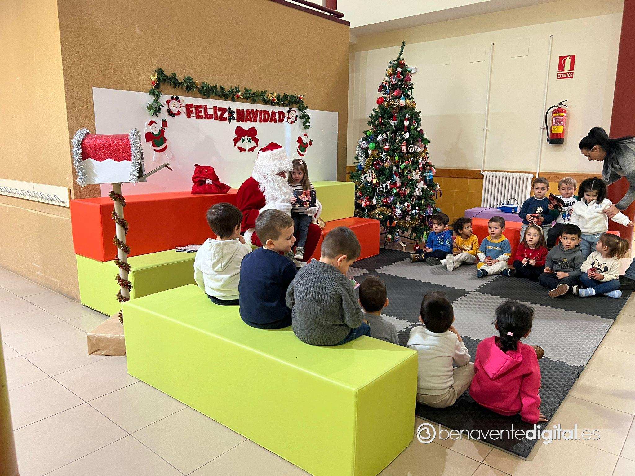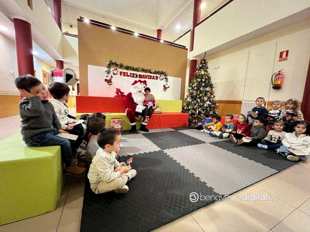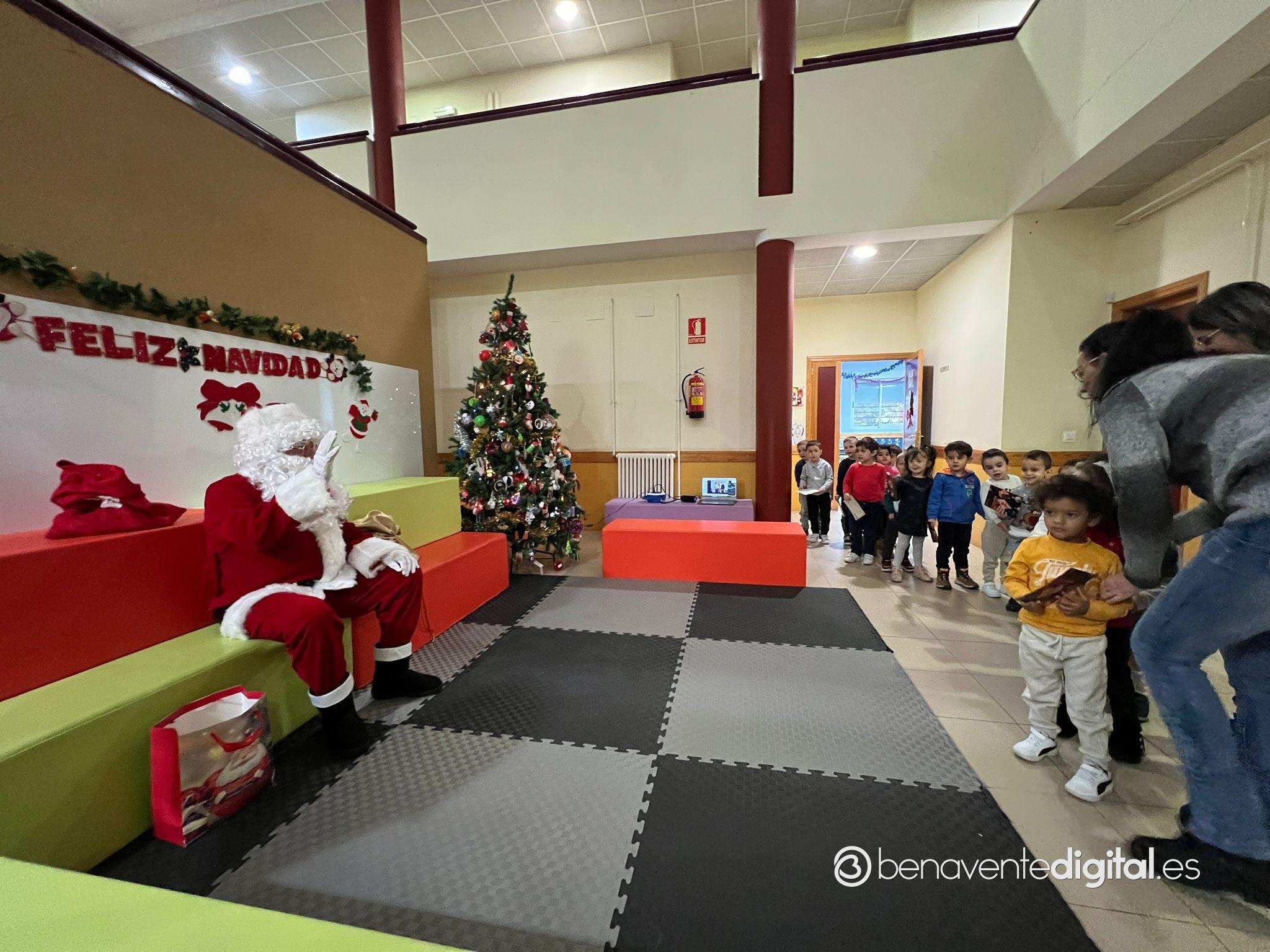 Papá Noel hizo su entrada en el colegio mientras los rostros de los pequeños se iluminaron con sonrisas radiantes al ver al legendario personaje navideño, vestido con su característico traje rojo y portando un saco lleno de regalos.