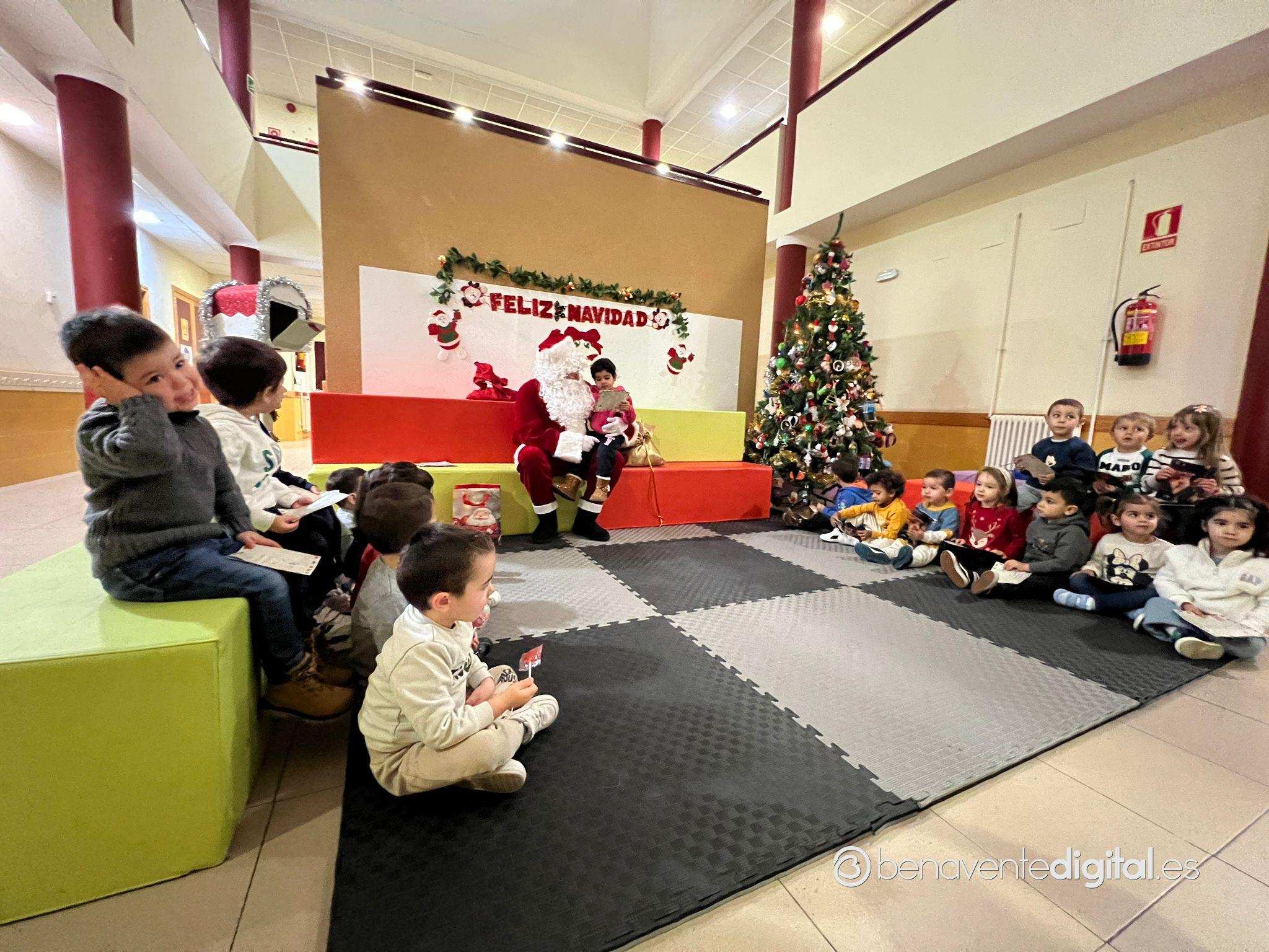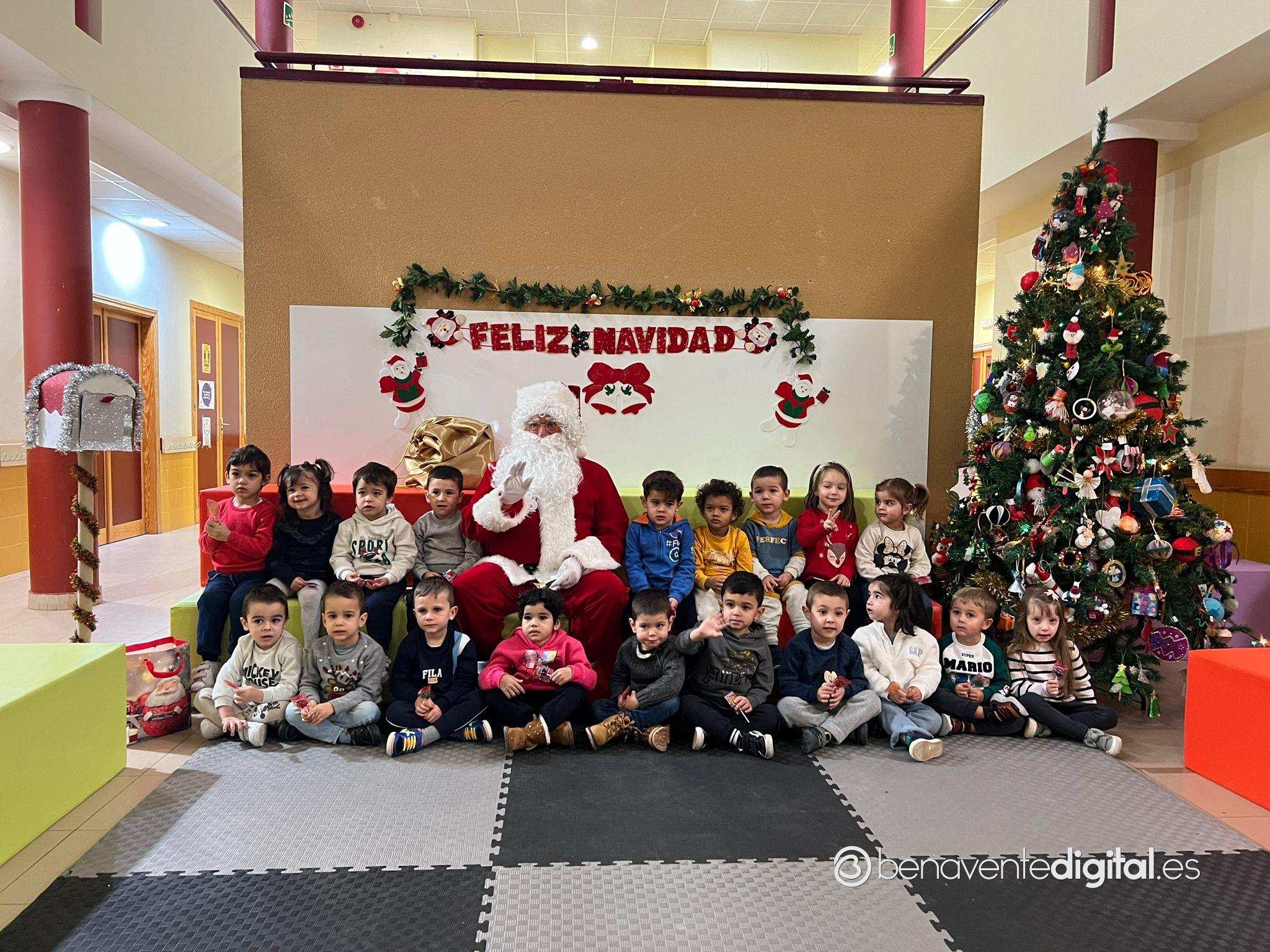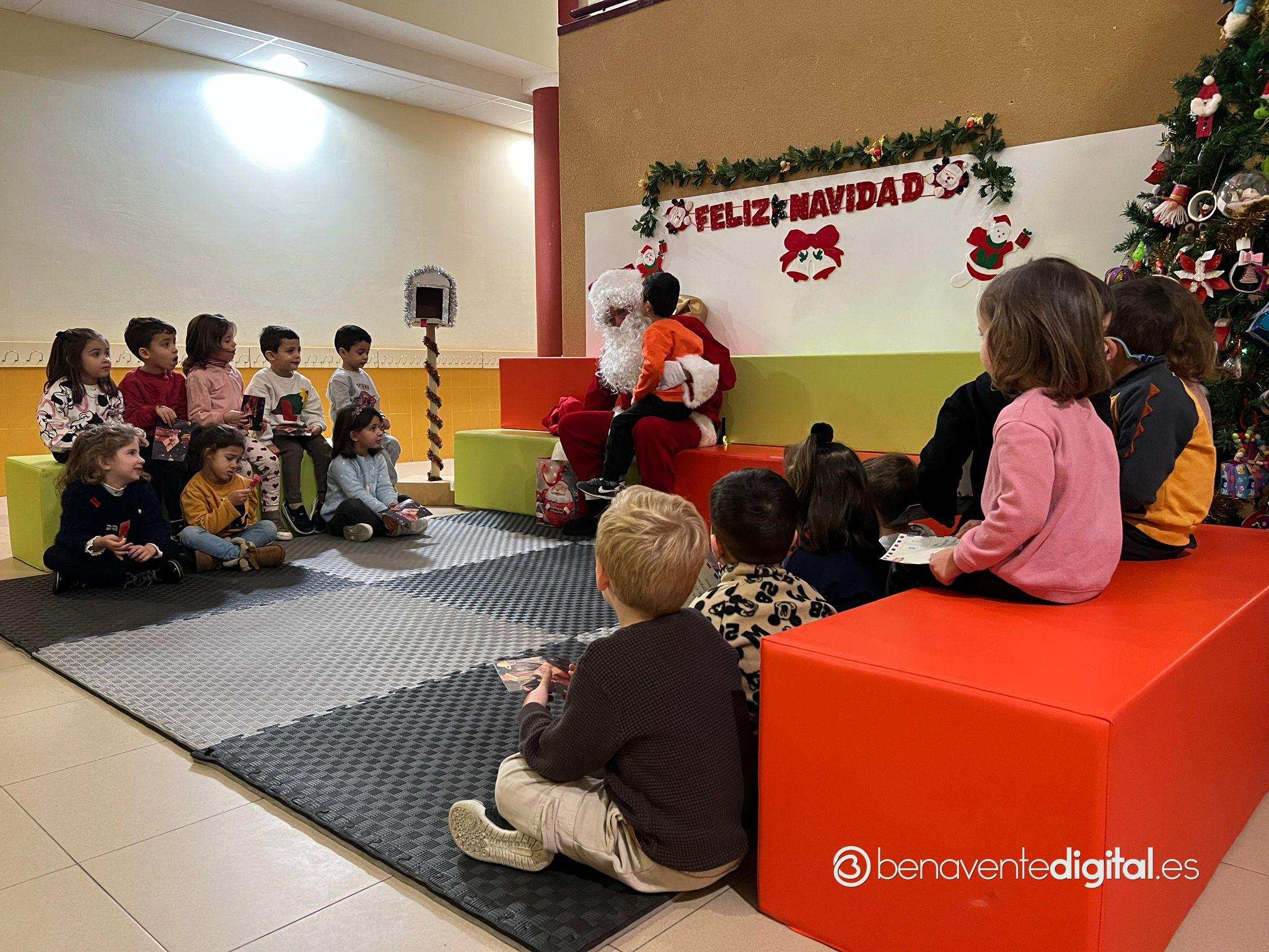 Papá Noel hizo su entrada en el colegio mientras los rostros de los pequeños se iluminaron con sonrisas radiantes al ver al legendario personaje navideño, vestido con su característico traje rojo y portando un saco lleno de regalos.