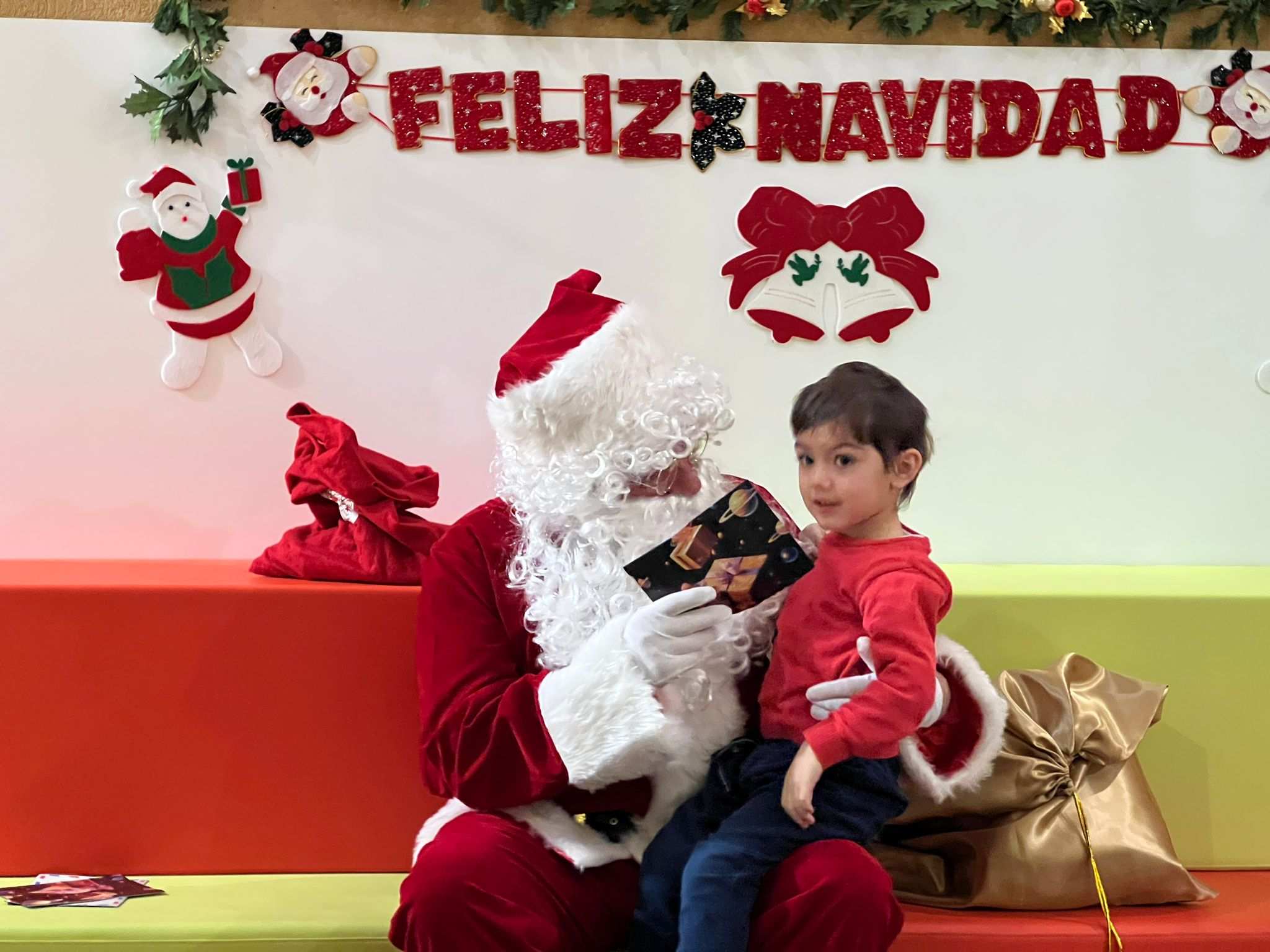 Papá Noel interactuó de manera cercana y afectuosa con los niños, escuchando sus deseos y riendo con ellos. La atmósfera festiva se contagió por todo el colegio, creando un ambiente de unidad y alegría. Los más pequeños rodearon a Papá Noel, ansiosos por compartir sus cartas y recibir un abrazo afectuoso.