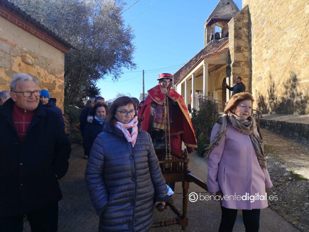 La pequeña talla policromada de San Tirso lucía este sábado 28 de enero sus mejores galas, de ello se encargó la cofradía del Santo Tiso que vela desde hace casi 400 años por mantener la tradición como ya se ha venido publicando en Benavente Digital y Televisión Benavente https://www.benaventedigital.es/la-milla-de-tera-renueva-durante-casi-400-anos-su-devocion-a-santo-tiso/