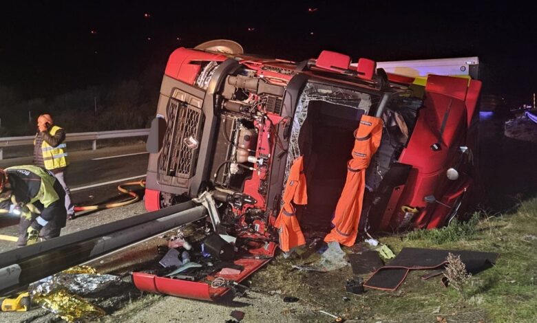 Está previsto que el camión sea retirado del lugar mañana lunes, por lo que uno de los carriles de la autovía permanece cortado en ese punto, debidamente señalizado por el equipo de mantenimiento de carreteras del Estado.