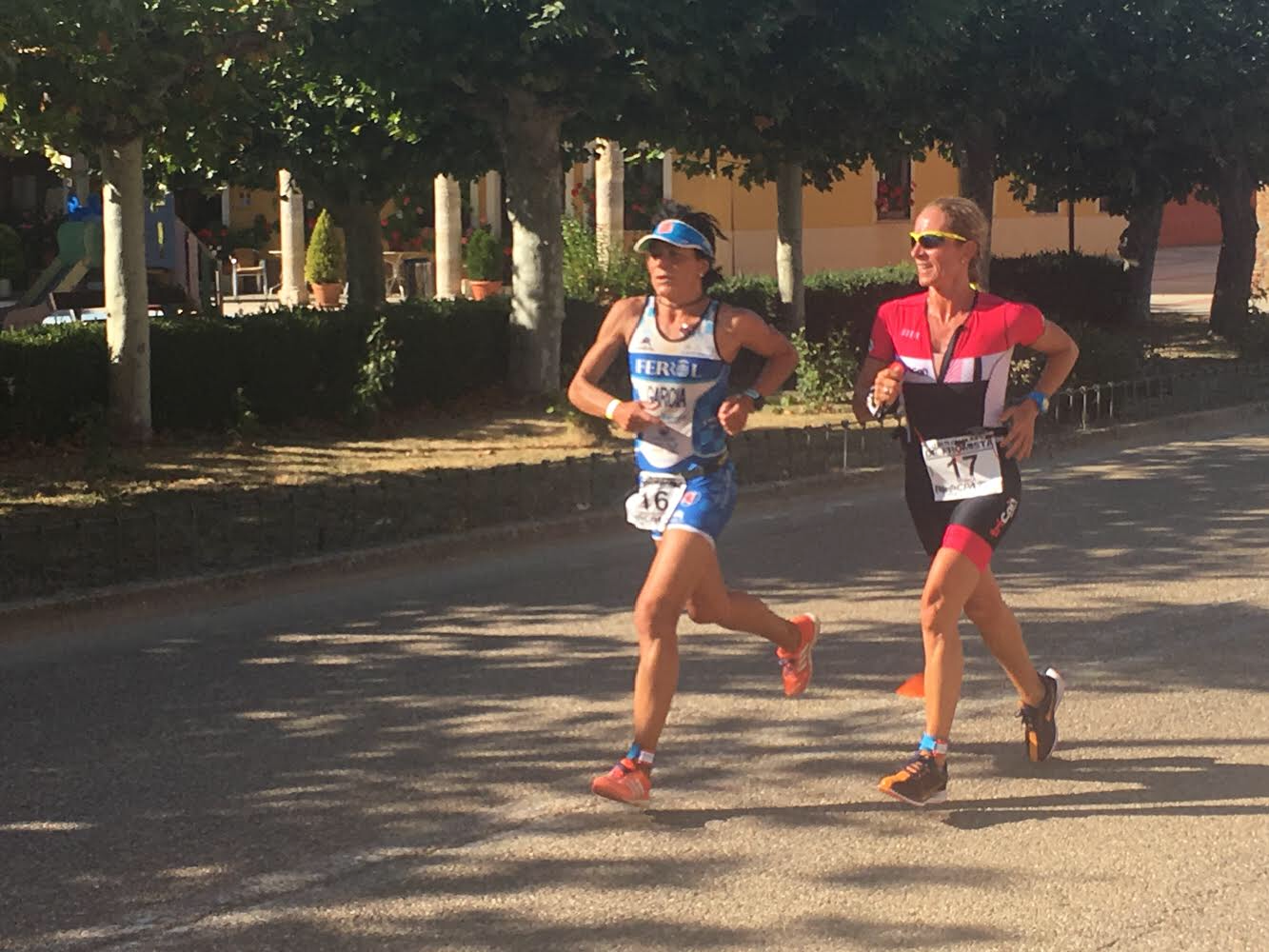 La prueba femenina no se quedaba atrás con nombres tan ilustres como Gurutze Frades, que en unos días se va a disputar a Hawaii el campeonato del mundo Ironman en categoría elite pro, Laura Gómez, subcampeona de Europa elite de triatlon cross y quinta del mundo. Maria José García estaba en las quinielas para obtener un gran resultado, debido a su gran palmarés y como actual campeona de Castilla y Leon de distancia olímpica. Pepa salida en el grupo de las elites, a las 16:00 después de un rapidísimo sector de natación en cabeza saldrían Esther Rodriguez y Laura Gómez, a 30segundos saldría la joven promesa del triatlon nacional Maddi Marquet y otros 30 segundo el grupo perseguidor encabezado por la estrella Ironman Gurutze Frades y Pepa García. Los 40km ciclistas, marcados por el fuerte viento, con rachas superiores a 40km/h, iba a situar la carrera prácticamente de manera definitiva. Al termino del sector las dos grandes favoritas Guru Frades y Laura Gómez abrían hueco con sus perseguidoras.