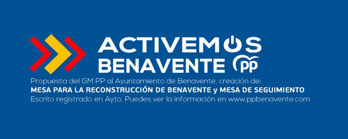 El Grupo Municipal del PP en el Ayuntamiento de Benavente ha iniciado una campaña “ACTIVA BENAVENTE” con diferentes medidas concretas, para trabajar para la recuperación de la economía de familias y empresas de Benavente. Añaden además que es para ayudar a todas aquellas personas y negocios que, como consecuencia de las medidas impuestas fruto de la pandemia, se encuentran en situación de vulnerabilidad por falta o reducción de sus recursos.