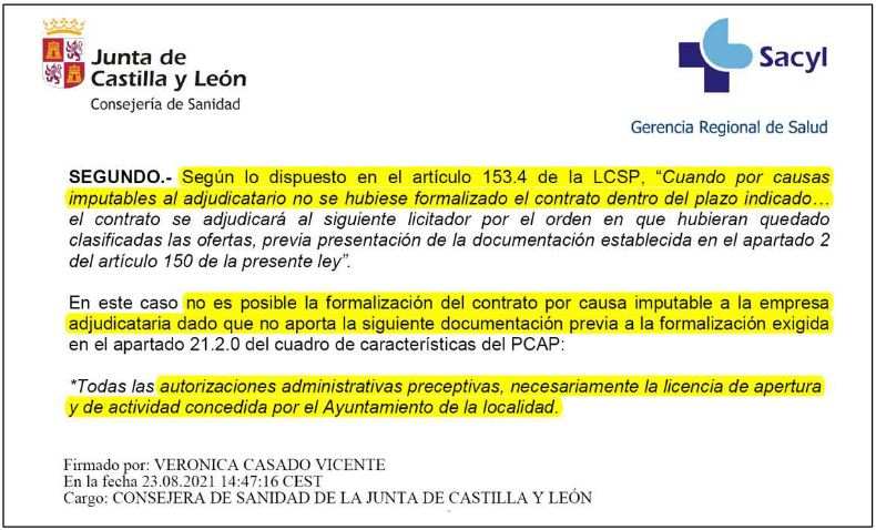 La empresa que venía ofreciendo el servicio de hemodiálisis carecía de las autorizaciones administrativas preceptivas, licencia de apertura y de actividad, denegadas por el propio Ayuntamiento. Tampoco tenía autorización para su funcionamiento. Todo ello quedó acreditado por la propia Consejera de Sanidad, en agosto del 2021.