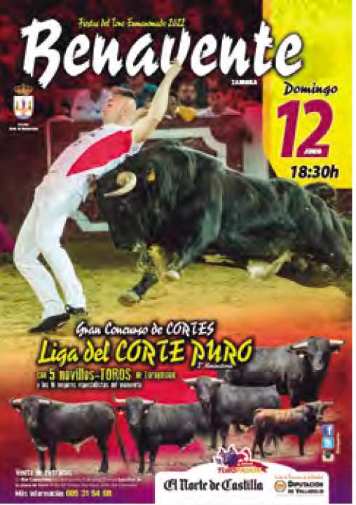 18:30 HORAS: GRAN ELIMINATORIA DE LA LIGA DEL CORTE PURO CIUDAD DE BENAVENTE con Novillos-Toros de las ganaderías Don José Samuel Pereira Lupi y Toropasión. Lugar – Plaza de Toros
