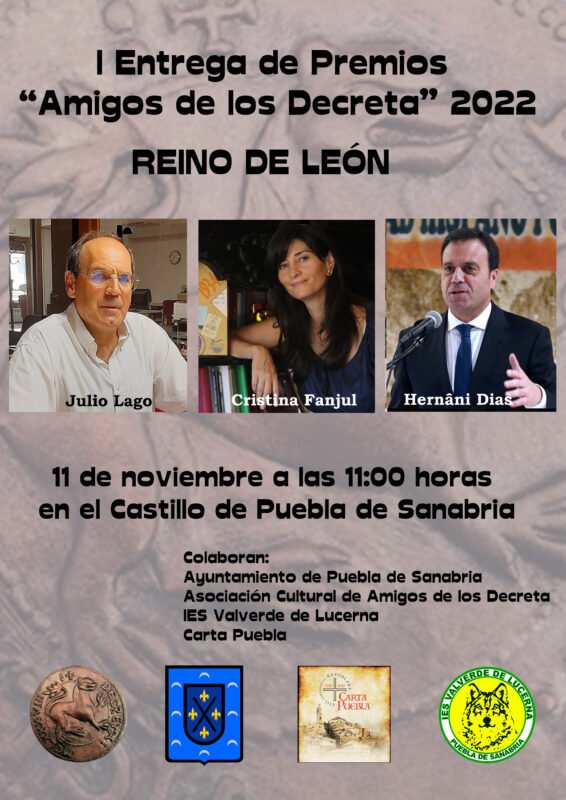 A continuación, se procederá a la entrega de los premios Decreta 2022 concedidos por la Asociación de Amigos de los Decreta a Hernâni Dias, Julio Lago, Cristina Fanjul.