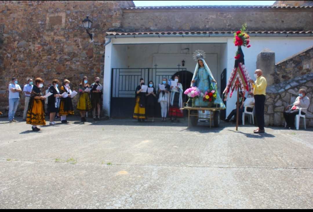 «En este confinamiento, tenemos que agradecer a todos esos sanitarios que se han dejado la piel», era uno de los versos cantados. «Mantén siempre vivas, Madre, las costumbres de los pueblos, que vengan siempre que puedan todos los que viven lejos», decía otro.