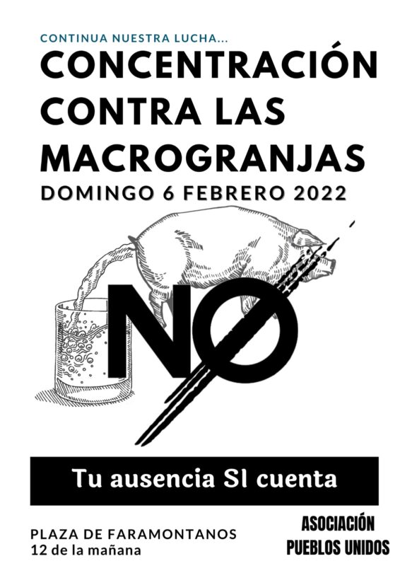 Cuando se cumplen 15 días desde el pasado 23 de enero de la concentración contra las macrogranjas organizada en Faramontanos de Tábara, la asociación Pueblos Unidos de la comarca de Tábara convoca una nueva cita para el próximo domingo 6 de febrero a las 12:00 horas en la plaza Mayor de Faramontanos. Un portavoz de la asociación convocante dará lectura a un manifiesto.