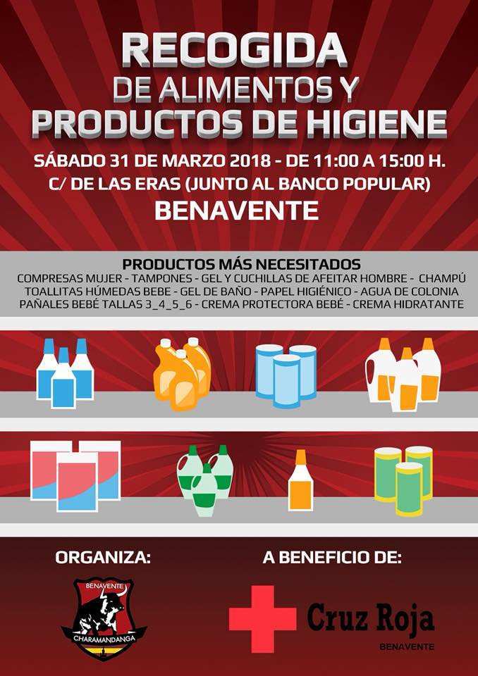 La Asociación Benéfica Taurina Charamandanga un año más aportará su grano de arena para los más necesitados a beneficio de Cruz Roja Benavente. Por ello llevarán a cabo un acto de recogida de alimentos y productos de higiene el próximo sábado 31 de marzo en la Calle de Las Eras junto al Banco Popular desde las once de la mañana hasta las tres del mediodía.