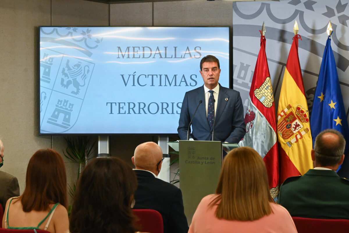 Esta mañana, la delegación territorial de la Junta en Zamora ha acogido el acto de entrega de la medalla a las Víctimas del Terrorismo de Castilla y León, al que también ha asistido la Asociación de Víctimas del Terrorismo en la Comunidad representada por su presidente, Sebastián Nogales. El consejero de la Presidencia ha hecho entrega de las distinciones a doce personas procedentes de diferentes lugares de la Comunidad en un acto muy significativo para la Junta de Castilla y León, quien tiene la obligación moral de distinguir nítidamente quienes son los terroristas y quienes son las víctimas, ofreciendo a éstas la victoria moral que supone ofrecer el relato de la verdad.