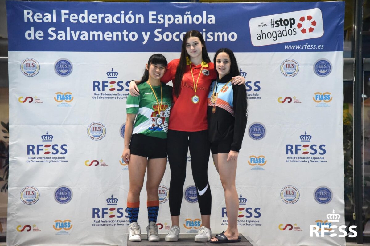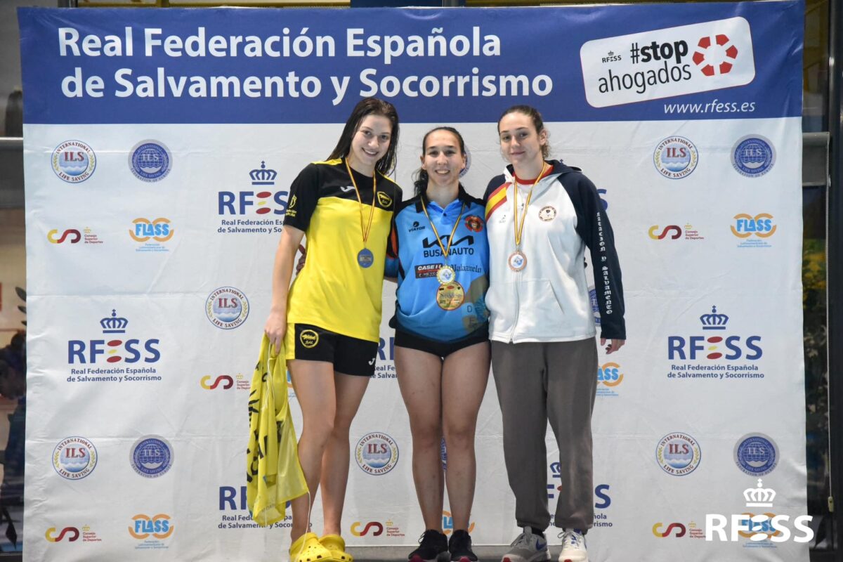 El medallero lo completaron Berta Arévalo Velasco (C.D. SOS La Bañeza) y Javier Frade Prieto (C.D.S. León) con un tercer y segundo puesto puesto en 50 metros natación con obstáculos juvenil y junior, respectivamente; Sofía Prieto Iñesta (C.S.S. Benavente) con bronce en 100 metros supersocorrista junior; Lidia Santos Martínez y Diana Turrado Álvarez (ambas del C.D. SOS La Bañeza) con medallas de bronce en 50 metros socorrista y 50 metros remolque de maniquí con aletas junior, correlativamente; y Javier Huerga Sánchez (C.S.S. Benavente) con plata, récord de España y autonómico en 100 metros supersocorrista (01:03:53).