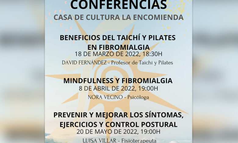 El viernes 18 de marzo a las seis y media de la tarde se hablará de los beneficios del Taichí y Pilates en Fibromialgia de la mano de David Fernández. Como segunda conferencia para el 8 de abril a las siete de la tarde la psicóloga Nora Vecino hablará del Mindfulness y fibromialgia. Por último y para finalizar el programa de conferencias, el 20 de mayo a las siete de la tarde, la fisioterapeuta Luisa Villar explicará cómo prevenir y mejorar los síntomas de la enfermedad, así como algunos ejercicios y control postural.