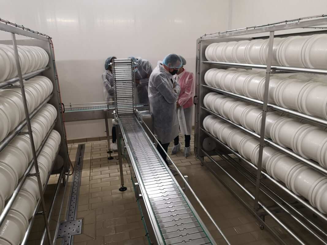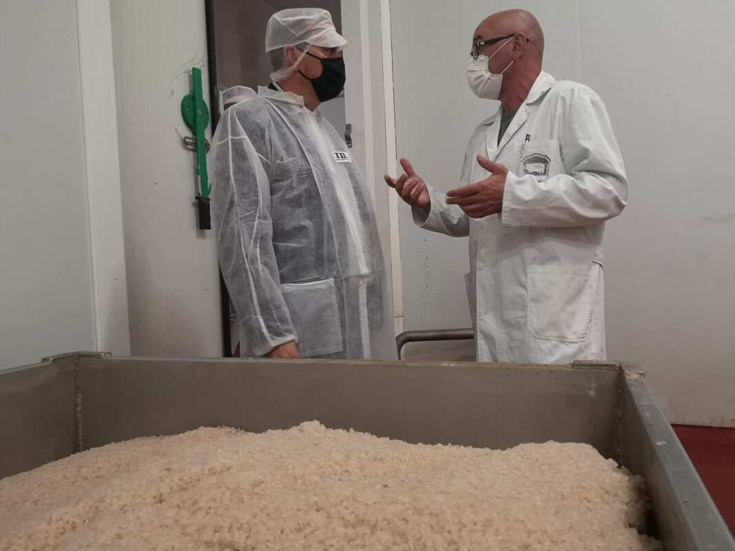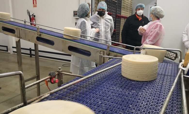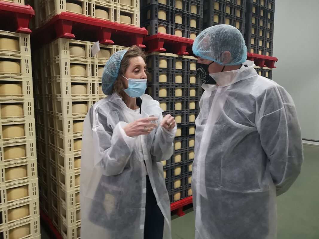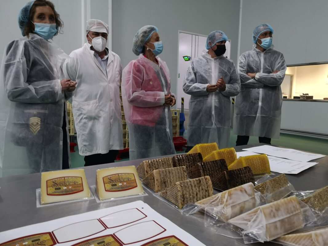 El presidente Requejo atiende las explicaciones de Marisa García, propietaria de la fábrica quesera