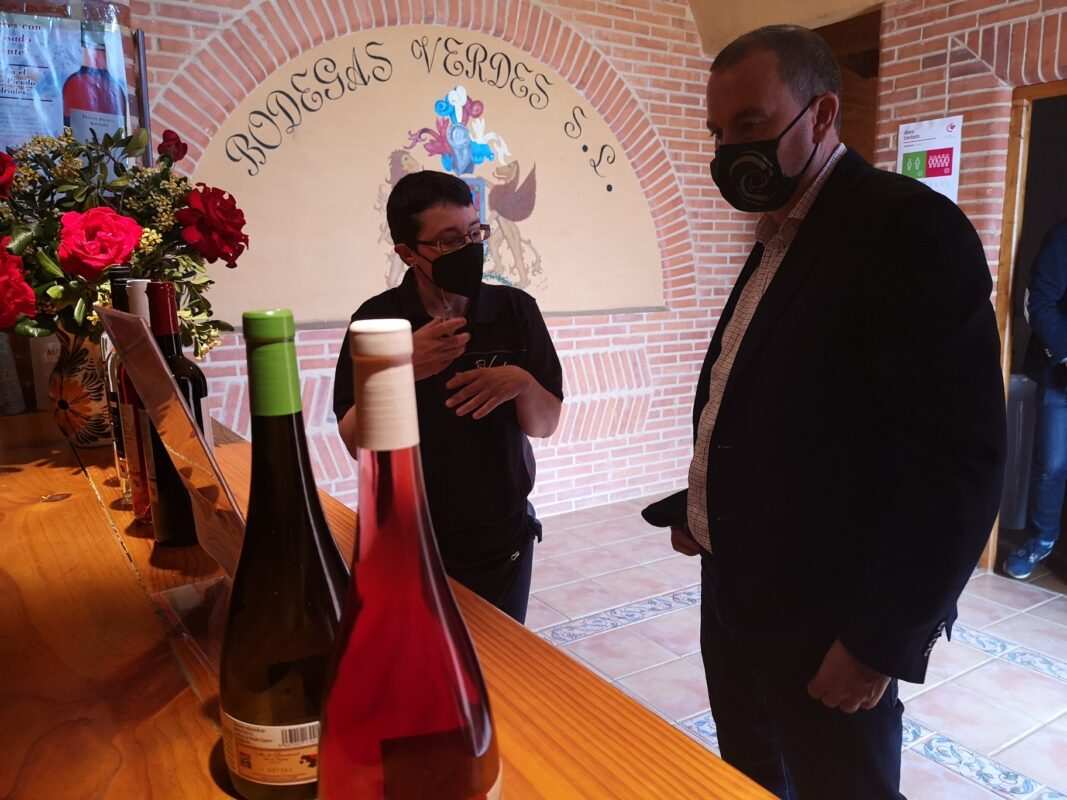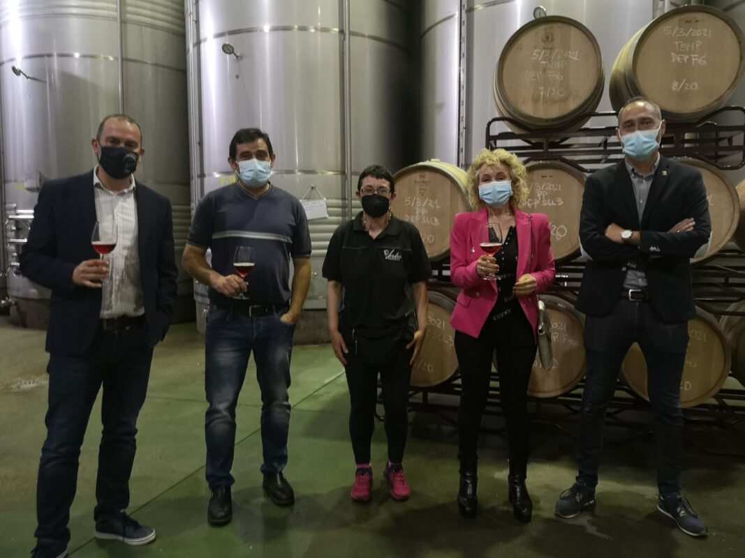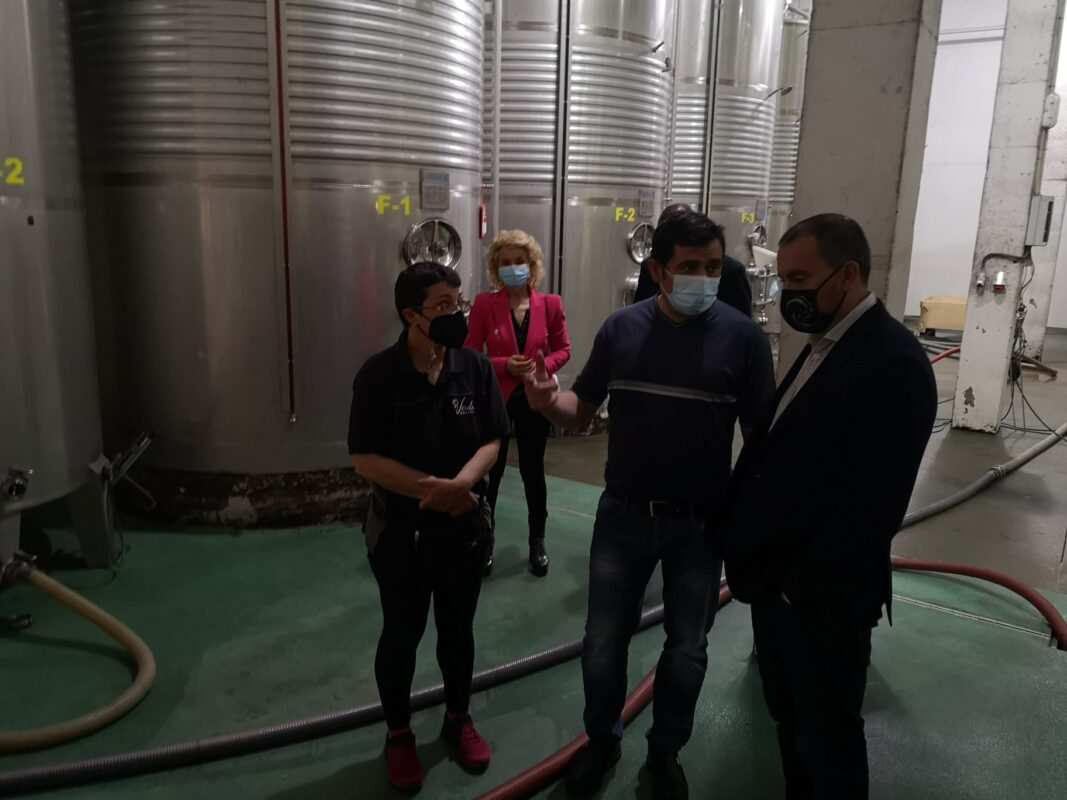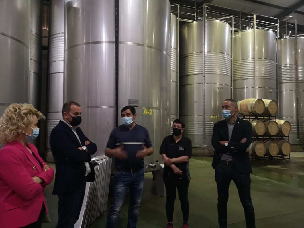 En las instalaciones de Bodegas Verdes en Santibáñez de Vidriales, el propietario Tomás Verdes, junto a su hermana Elvira, ofrecen explicaciones al presidente de la Diputación