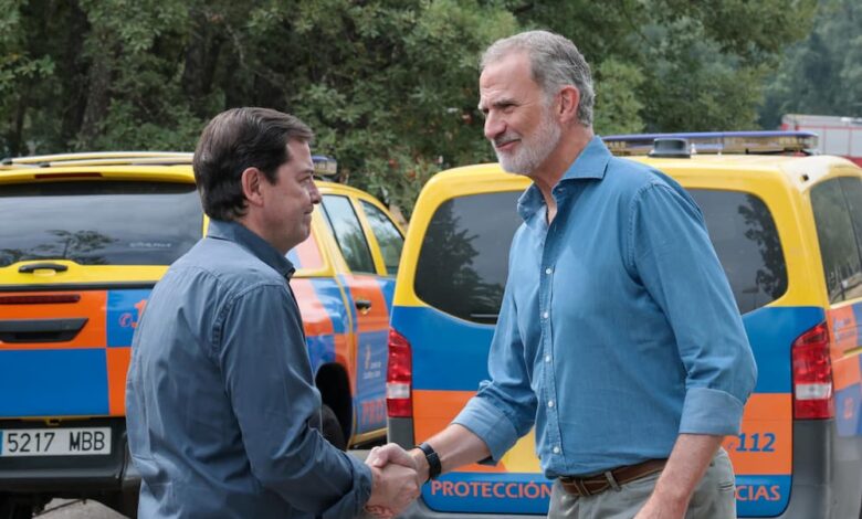 Nada más llegar, los Reyes han sido recibidos por el Presidente de la Junta de Castilla y León, Alfonso Fernández-Mañueco, la Ministra de Igualdad, Ana Redondo, y el alcalde de Galende, Miguel Ángel Martos.