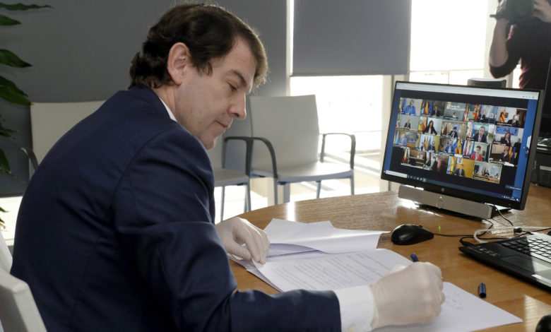 Alfonso Fernández Mañueco ha destacado que los esfuerzos principales del Gobierno de Castilla y León se han dirigido a garantizar la atención sanitaria y los servicios sociales, especialmente a las personas más vulnerables; la distribución y el abastecimiento, especialmente de la cadena alimentaria y de los productos de primera necesidad; y el mantenimiento de la actividad económica y el empleo, además de sentar bases para la recuperación posterior.