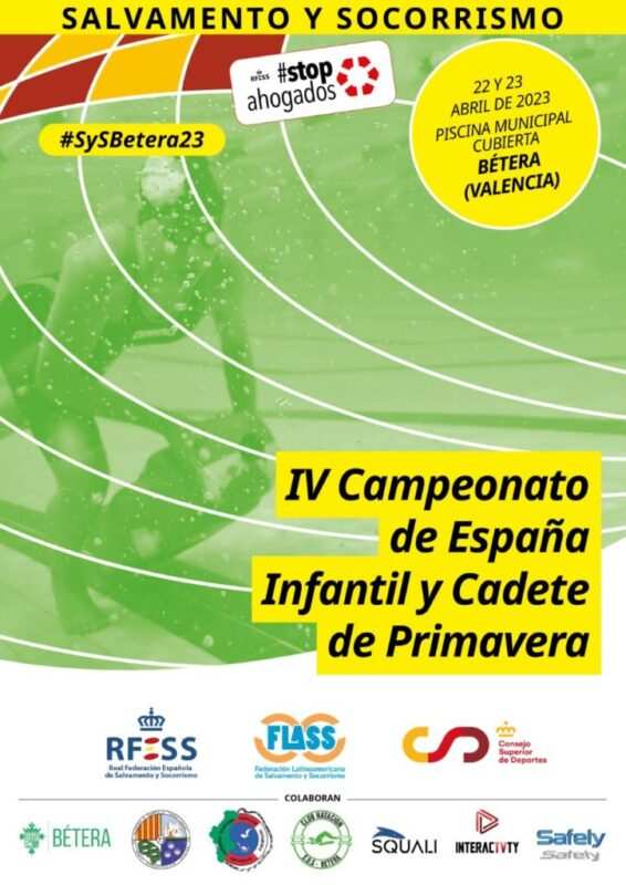 Siete clubes deportivos de Castilla y León, entre ellos el Club Salvamento y Socorrismo Benavente, se medirán en el Campeonato de España Infantil y Cadete de Primavera de Salvamento y Socorrismo, SySBetera23, que se celebrará durante los días 22 y 23 de abril de 2023 en la Piscina Municipal Cubierta de Bétera, en Valencia.