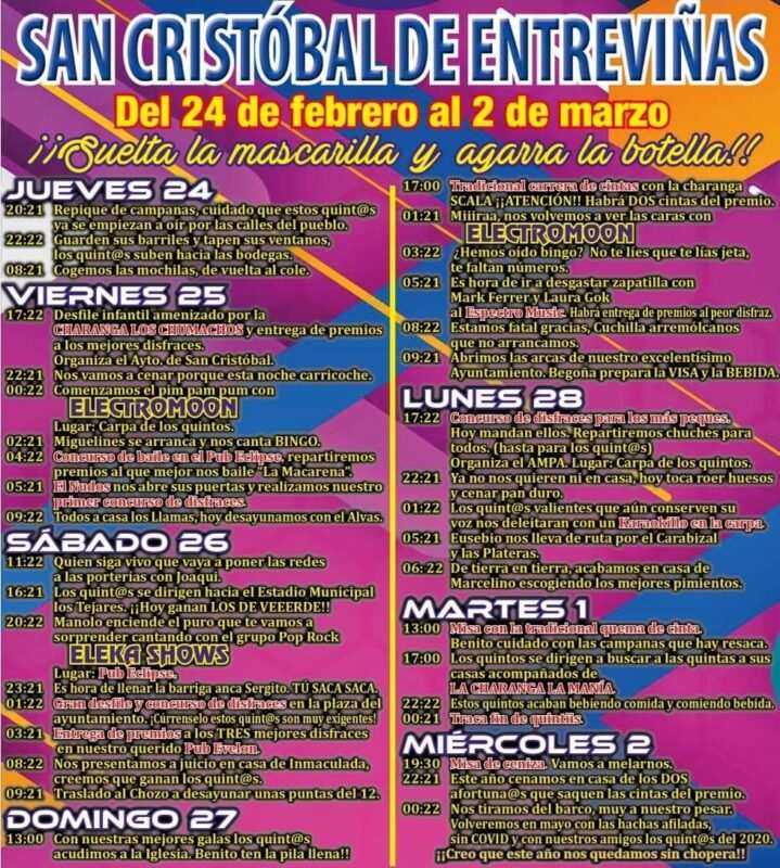 Cartel de las fiestas de Quintos y Carnavales en San Cristóbal de Entreviñas