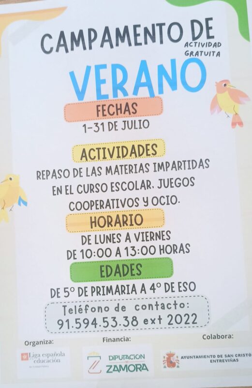San Cristóbal de Entreviñas abre a partir del próximo lunes 1 de julio un campamento de verano para los jóvenes de 12 a 16 años que han estado durante todo el período escolar en clases de refuerzo y aquellos que quieran participar aunque no hayan ido a clases.