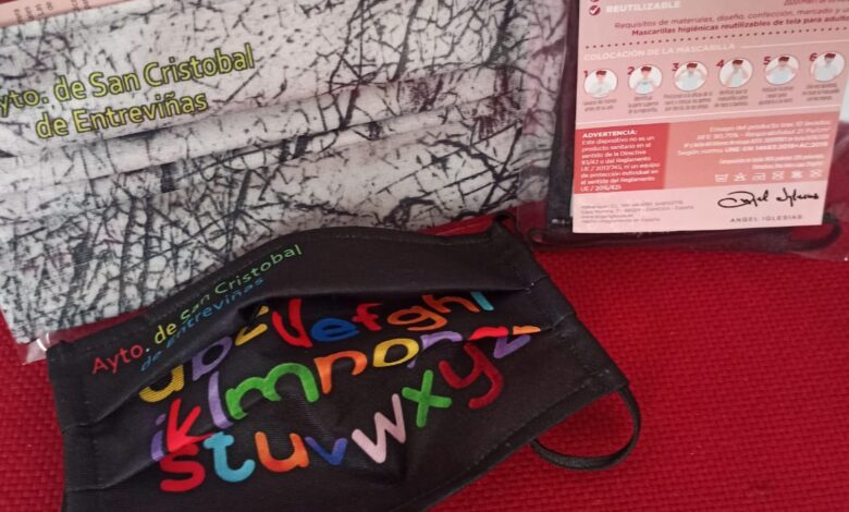 El Ayuntamiento de San Cristóbal de Entreviñas hará entrega de 80 mascarillas higiénicas estampadas a los escolares de San Miguel, Santa Colomba de las Carabias y San Cristóbal del diseñador zamorano Ángel Iglesias en las que aparece el nombre del municipio y con llamativos colores.